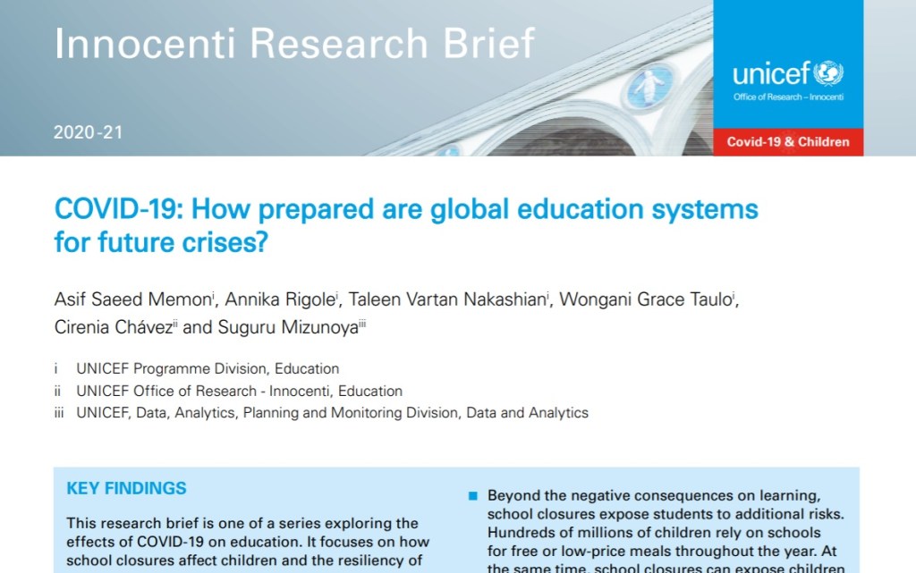This research brief is one of a series exploring the effects of COVID-19 on education. It focuses on how school closures affect children and the resiliency of education systems to respond to such disruptions and mitigate their effects.